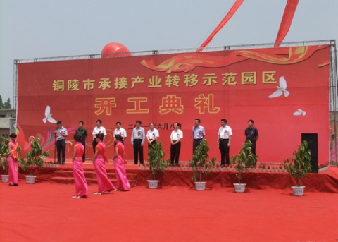 2011年6月8日上午陽光和煦、微風(fēng)徐徐,東聯(lián)鄉(xiāng)永太路施工現(xiàn)場花團(tuán)錦簇,彩旗飄揚(yáng)。銅陵市承接產(chǎn)業(yè)轉(zhuǎn)移示范園區(qū)工程建設(shè)開工奠基儀式在這里隆重舉行。