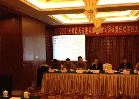 總經(jīng)理錢立華宣讀了2014年天奇藍(lán)天任職通知,并與各部門簽定了2014年的目標(biāo)責(zé)任狀。