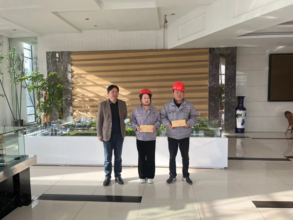 日前,財(cái)務(wù)部倉庫員工周陵元、賀慧玲在工作中堅(jiān)持原則、甘于奉獻(xiàn),較好地體現(xiàn)了員工的“主人翁”責(zé)任感以及“以廠為家”的精神,及時(shí)堵塞公司管理漏洞,摒棄不正之風(fēng)。經(jīng)公司決定:分別給予周陵元1000元人民幣、賀慧玲500元人民幣的現(xiàn)金獎(jiǎng)勵(lì)。 2023年11月15日下午3時(shí),公司總經(jīng)理張啟明向受到表彰的周陵元、賀慧玲給予現(xiàn)金獎(jiǎng)勵(lì),并與他們合影留念。 |